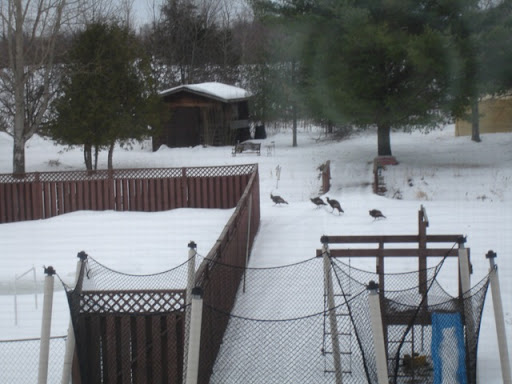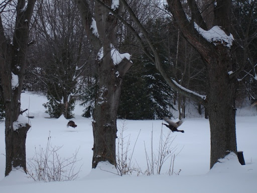 These wild turkey have been walk across the back yard almost everyday since the snow got deep. Sometimes as many as 30 birds will go across, what a great sight.